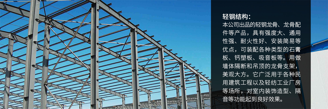 主要从事轻钢结构、多高层钢结构工程施工、外墙保温工程、土建工程、装饰工程等。自主研发、生产种种彩钢压型板、新型彩钢复合板、轻钢楼承板、H型钢、C、Z型钢等的钢结构系统制造商。